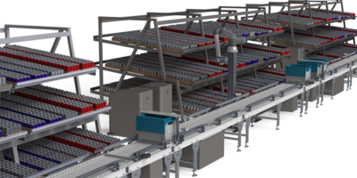 Before 台車上に14段積まれた番重へ焼き菓子を詰め、もう一度台車に積み直す作業を、4名が手作業で行っていた。 After 全工程を...
